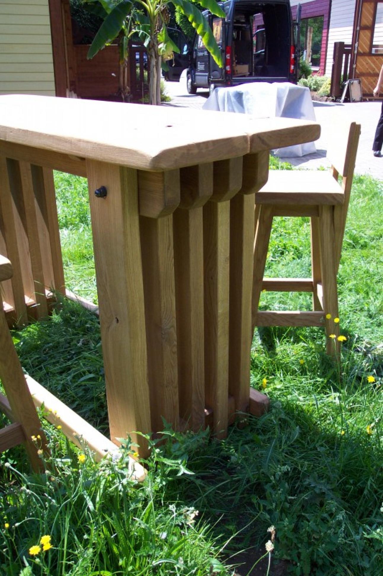Stehbar mit Barhocker in massiver Eiche, Oberflächenvergütet geölter.